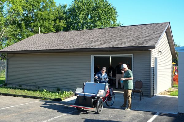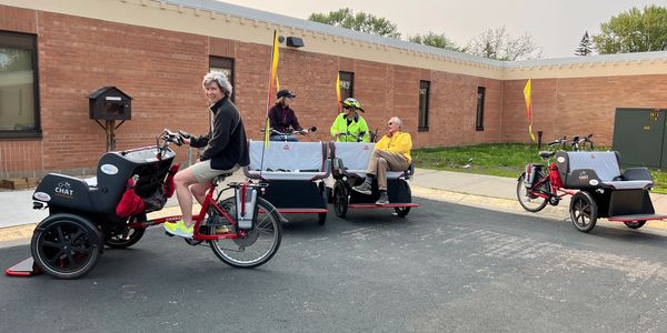 The Cycling Without Age storage and maintenance shed is located centrally between the senior living centers in Hastings to provide easy access to those facilities and the downtown area. The shed has parking spots with charging stations, storage for informational brochures and the items needed to maintain our fleet.